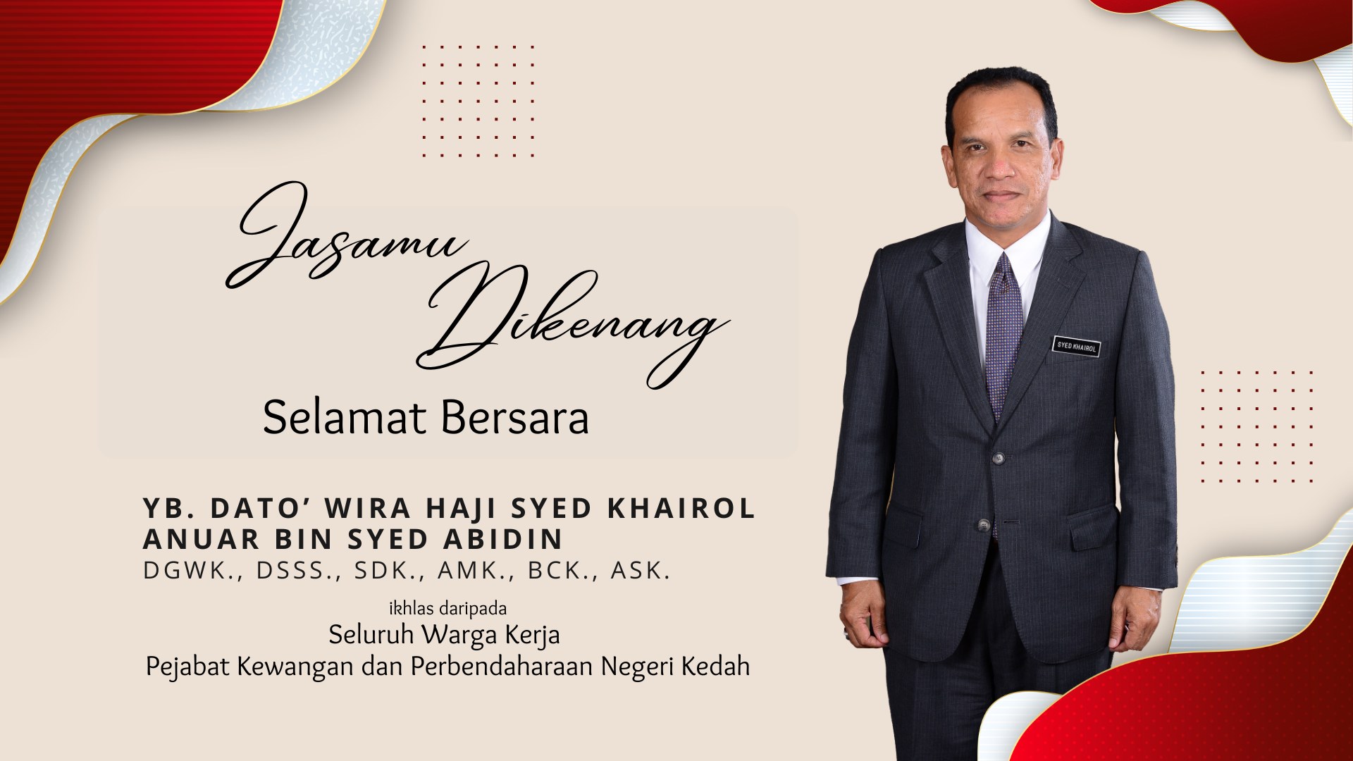 Setinggi-tinggi penghargaan dan ucapan terima kasih kepada Yang Berhormat Datoβ Wira Haji Syed Khairol Anuar bin Syed Abidin atas segala jasa, bakti dan sumbangan sepanjang berkhidmat sebagai penjawat awam Negeri Kedah.